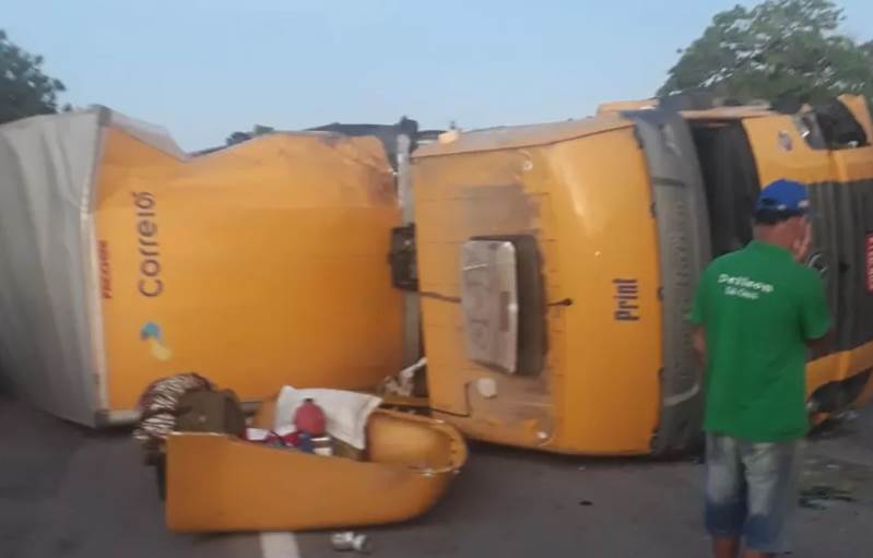 Segundo a Polícia Rodoviária Federal (PRF), a carga no caminhão à serviço dos Correiros foi saqueada. O veículo da empresa bloqueou parcialmente a rodovia e os agentes da PRF sinalizaram o local.