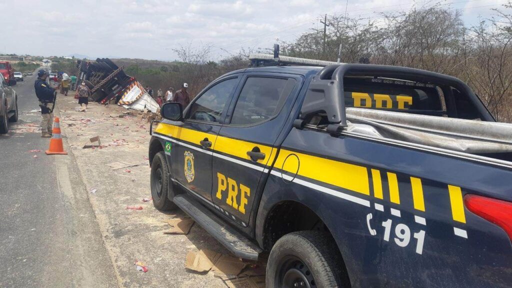 A PRF afirma que, com a chegada dos agentes ao local, as novas tentativas de saque foram frustradas. O trânsito na região Conforme a Polícia Rodoviária Federal (PRF), após o acidente.