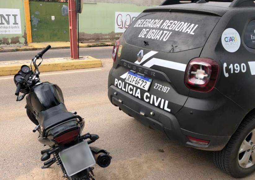 Uma ofensiva coordenada pela Polícia Civil do Estado do Ceará (PCCE), nessa quinta-feira (13), resultou na prisão em flagrante de uma mulher por receptação e no cumprimento de um mandado de busca e apreensão pelo ato infracional análogo ao crime de roubo em desfavor de seu companheiro, um adolescente de 15 anos. Ambas as capturas ocorreram no município de Iguatu – pertencente à Área Integrada de Segurança 21 (AIS 21) do Estado. Uma motocicleta, com registro de roubo, que estava em posse da mulher, e que possivelmente foi subtraída pelo adolescente, foi recuperada e restituída ao proprietário.