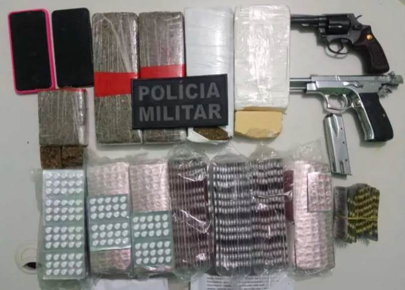 Os policias fizeram uma vistoria no estabelecimento e encontraram a arma em uma lixeira. Na dispensa estavam tabletes de maconha, cocaína e crack, além de uma pistola e munição. Os comprimidos foram encontrados no quarto do casal. Foram apreendidos dinheiro em espécie e dois celulares.