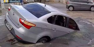 Um carro caiu dentro de uma cratera após o asfalto ceder em uma rua do Bairro Coaçu, em Fortaleza, na manhã desta quarta-feira (28). O reboque foi até o local, de onde …