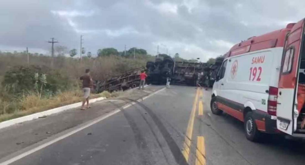 Colisão entre carreta e carro mata motorista e bloqueia trecho de rodovia, em Chorozinho