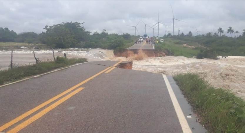 Correnteza de rio destrói estrada em rodovia do Ceará