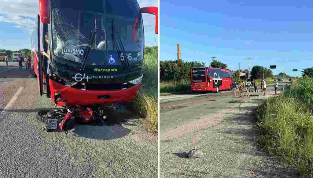 Dois homens morrem em acidente entre ônibus e moto na CE-085, em Itapipoca