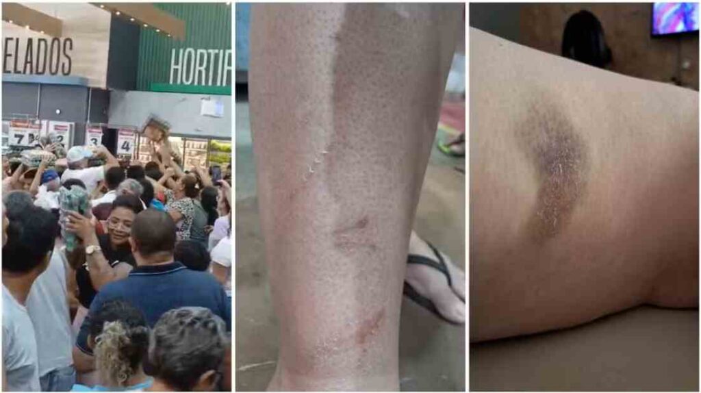 Durante o empurra-empurra, Eliane acabou sendo derrubada e pisoteada por clientes que tentavam pegar as bandejas de ovos em promoção.