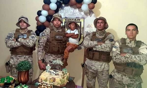 O desejo de uma criança, residente em Crato, foi atendido por policiais militares lotados no Comando Tático Rural (COTAR) do 4º Batalhão de Policiamento de Choque da Polícia Militar do Ceará, Na noite de domingo (27) eles compareceram á festa de aniversário de 3 anos do pequeno João Watson ,satisfazendo a vontade do mesmo.