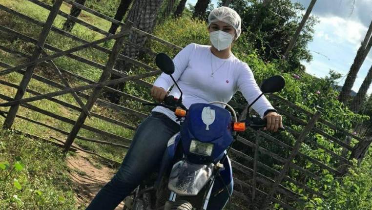 “Quando o lugar não tem acesso com o carro, peço emprestada a moto do vigia da unidade ou de algum agente de saúde. A moto mesmo não é minha”.