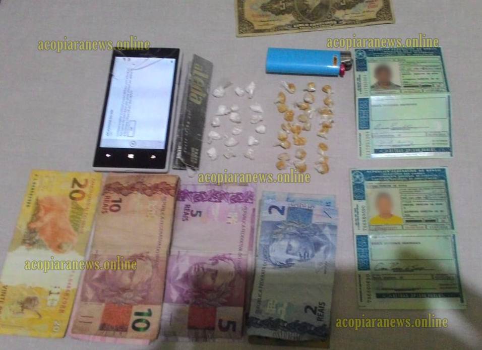 Já no Bairro Vila Esperança, em uma casa localizada em uma rua conhecida como “Boca de S” residência usada como ponto de venda de entorpecentes, o policiamento apreendeu aproximadamente 28 pinos de crack e 17 papelotes de cocaína. Além da droga, foi apreendido também um aparelho celular, duas carteiras de habilitação falsas e aproximadamente R$ 200,00 em dinheiro.