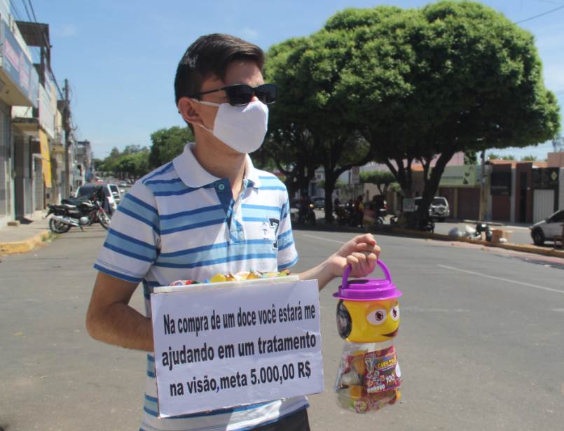 Jovem vende balas no trânsito de Juazeiro para obter dinheiro para cirurgia oftalmológica