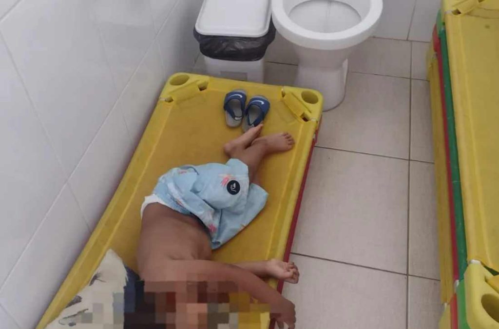 “Fui chamada na escola e foram as próprias professoras que me contaram que meu filho tinha sido colocado no banheiro para dormir. A justificativa foi de que o banheiro estava desativado e era mais fresco, mais arejado e mais tranquilo. Eu fiquei indignada, não levo meu filho na escola para dormir em banheiro. E se ele acorda e cai, e se ele coloca a mão no vaso, e se sai um bicho peçonhento e pica ele? “, disse.