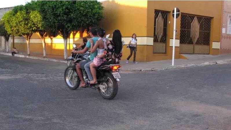 A reportagem da TV Verdes Mares flagrou motocicletas sem placa e outras conduzindo, três ou quatro pessoas, incluindo crianças sem capacete.