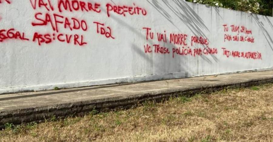 Imagens enviadas por moradores mostram pichações em muros da cidade, alertando o prefeito caso seja enviado reforço policial. Apesar das ameaças, o prefeito já afirmou que não vai medir esforços para garantir a segurança da população.