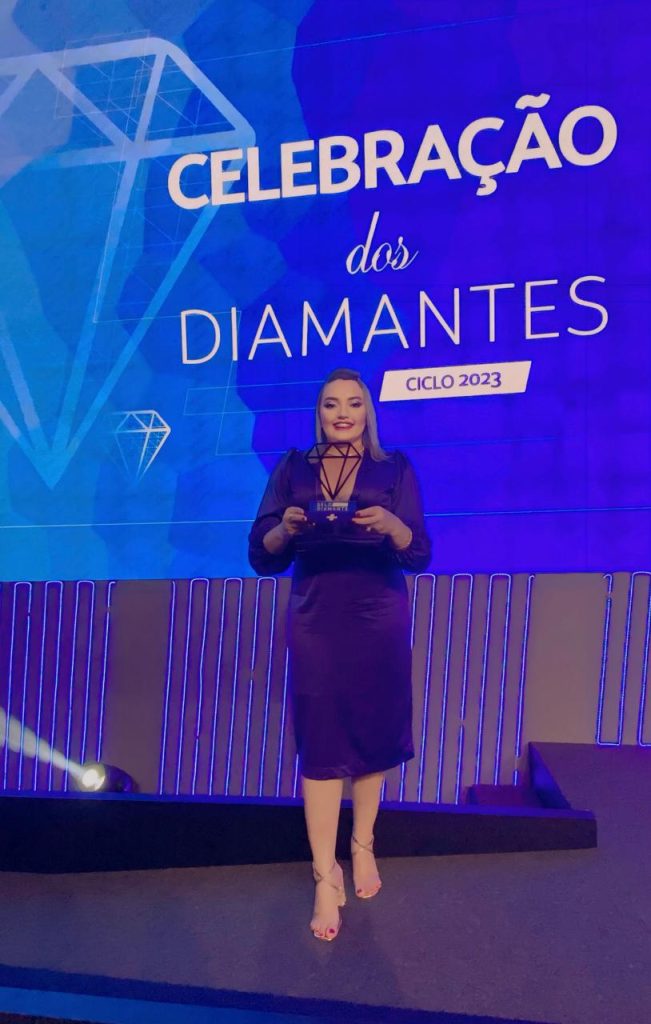 Durante o evento, a Agente de Desenvolvimento da Sala do Empreendedor de Acopiara, Ghyslayne Saldanha, foi agraciada com o Selo Diamante a nível nacional em Qualidade em Atendimento pelo Sebrae.
