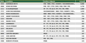 Veja a lista completa dos candidatos a Deputado Estadual mais votados no município de Acopiara. Confira AQUI. Veja os candidatos a Dep Federal que obtiveram votos em Acopiara