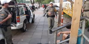 Depois da superlotação de viaturas e da interdição da sala de triagem do Palácio da Polícia, em Porto Alegre, um preso foi algemado ao corrimão de uma escada que dá …