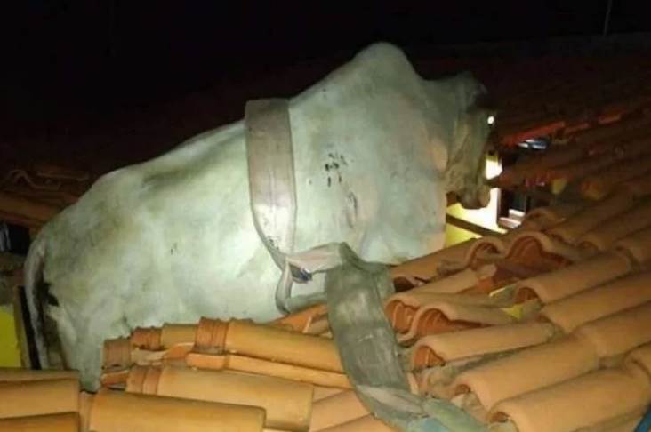 É uma história com muita criatividade. Mas imaginem o susto dos bombeiros quando receberam o chamado, por volta das 23h, para retirar uma vaca do telhado?