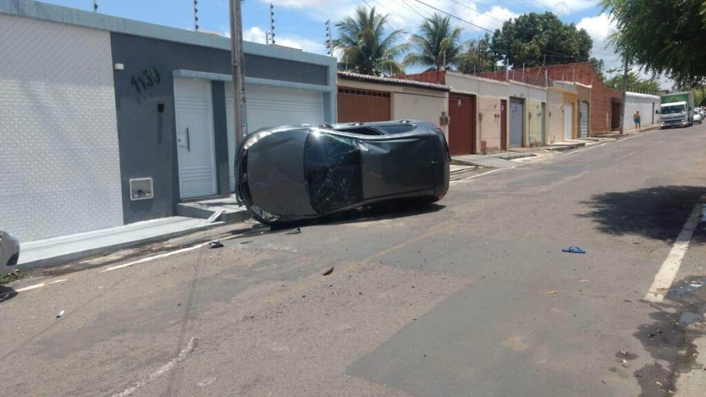 Uma perseguição policial terminou com um veículo capotando no bairro Pio XII, em Juazeiro do Norte, na região do Cariri, na manhã desta sexta-feira (23). A Polícia Militar seguia o veículo após ter dado ordem de parada e o condutor não obedecer e fugir. A ação foi registrada por câmeras de segurança.