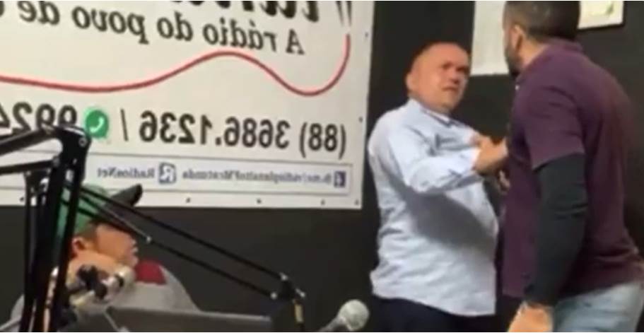 Um vereador invadiu um estúdio de rádio e agrediu um advogado que participava de um programa ao vivo, sobre os direitos de servidores públicos, no município de Catunda, no interior do Ceará. A agressão aconteceu no início da tarde desta segunda-feira (17), logo após o advogado citar na rádio que o vereador havia dado um voto desfavorável aos servidores na Câmara Municipal. Uma câmera de segurança flagrou a agressão.